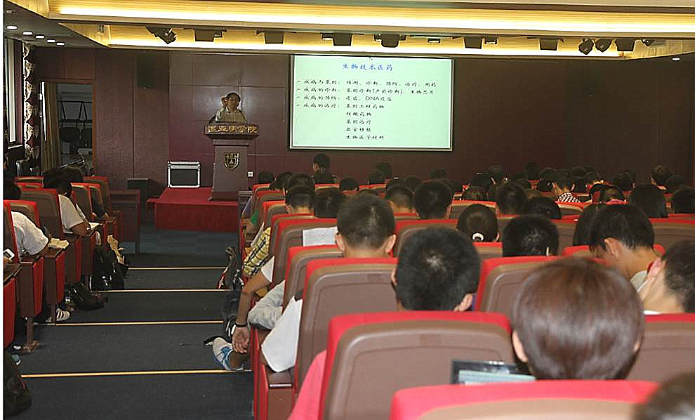 接下来,华教授又分别从转基因动物技术、生物医学材料和制药产业的变化等方面继续深入话题。他尤为着重提到了“精确医疗”这个概念,也就是对于不同的个体定制特定的治疗方案。过往的西医不论是药物还是治疗手段等很多都是模式化规范化的,对于患者个体不同的考虑较少,这就使得有时药物针对性差导致效率的低下。“精确医疗”则是将个体的因素考虑在内,针对性强,大大提高了药物和治疗的效率,而它的实现无疑依赖着生物技术的发展。华教授在之后举了几个实际应用的例子,包括利用人体干细胞培育出颚骨,用乳腺干细胞让乳房再生,IPS细胞定制等。在讲述这些例子时,华教授尽可能使用通俗而又诙谐的语言,让还没接触到科研的同学们也能够听得津津有味,时而忍俊不禁。通过这些例子,同学们对于生物技术的作用有了更加感性的认识,也更加体会到了发展生物技术的重要性。