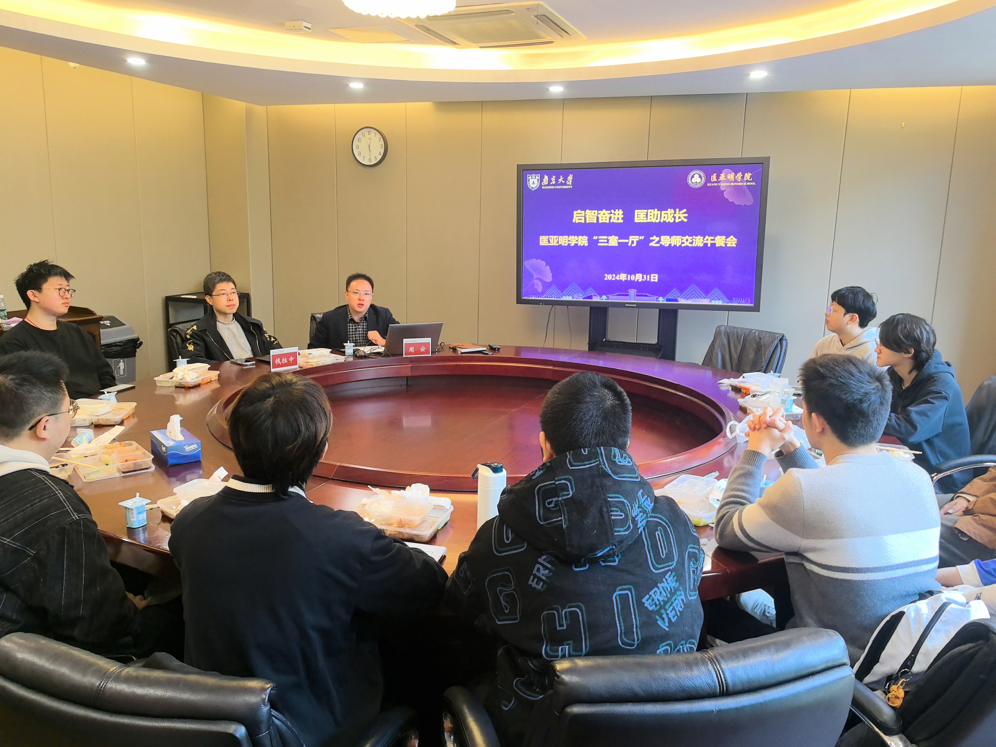 为全面贯彻落实立德树人根本任务、凝聚专业教师全员育人合力、着力提升“三室一厅”工作实效, 10月31日中午,偷拍自拍 举行“启智奋进,匡助成长”导师交流午餐会。本次活动特邀偷拍自拍 计算机学院教授、博士生导师钱柱中进行学术分享及导师引领,偷拍自拍 辅导员陈丹及学生代表15人共同参加。午餐会由偷拍自拍 党委副书记周安主持。