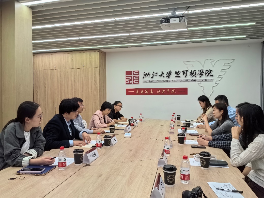 11月15日下午,师生一行来到浙江大学竺可桢学院。徐晓峰向偷拍自拍 师生来访表示欢迎,并介绍了竺可桢学院四十年发展历史、培养特色和教改思路。他表示,两院在拔尖创新人才培养上各具特色,面向未来更具挑战的高质量培养要求,双方可以共同探索育人机制和改革路径。周媛介绍了偷拍自拍 大理科育人模式的教育理念、育人举措和培育成效,并对竺可桢学院师生在参与偷拍自拍 基础学科论坛、四校荣誉学院支教等活动中的持续支持表示感谢。路欣从学院建制、拔尖人才培养方案、学生思想政治教育、国际化建设等方面介绍了竺可桢学院的基本情况。双方围绕本博贯通模式、个性化培养方案、教学思政一体化、教师队伍建设等议题进行了交流探讨。