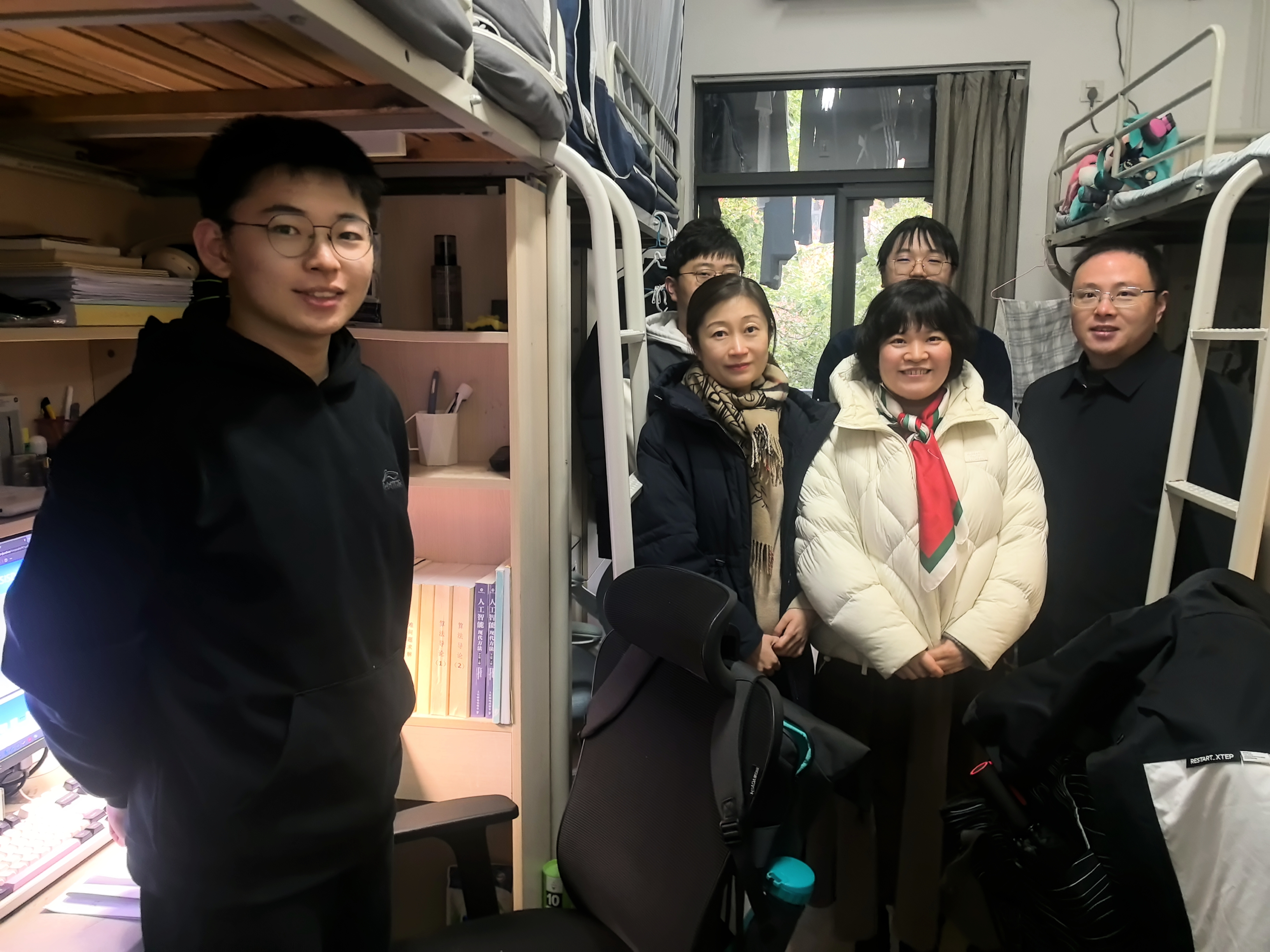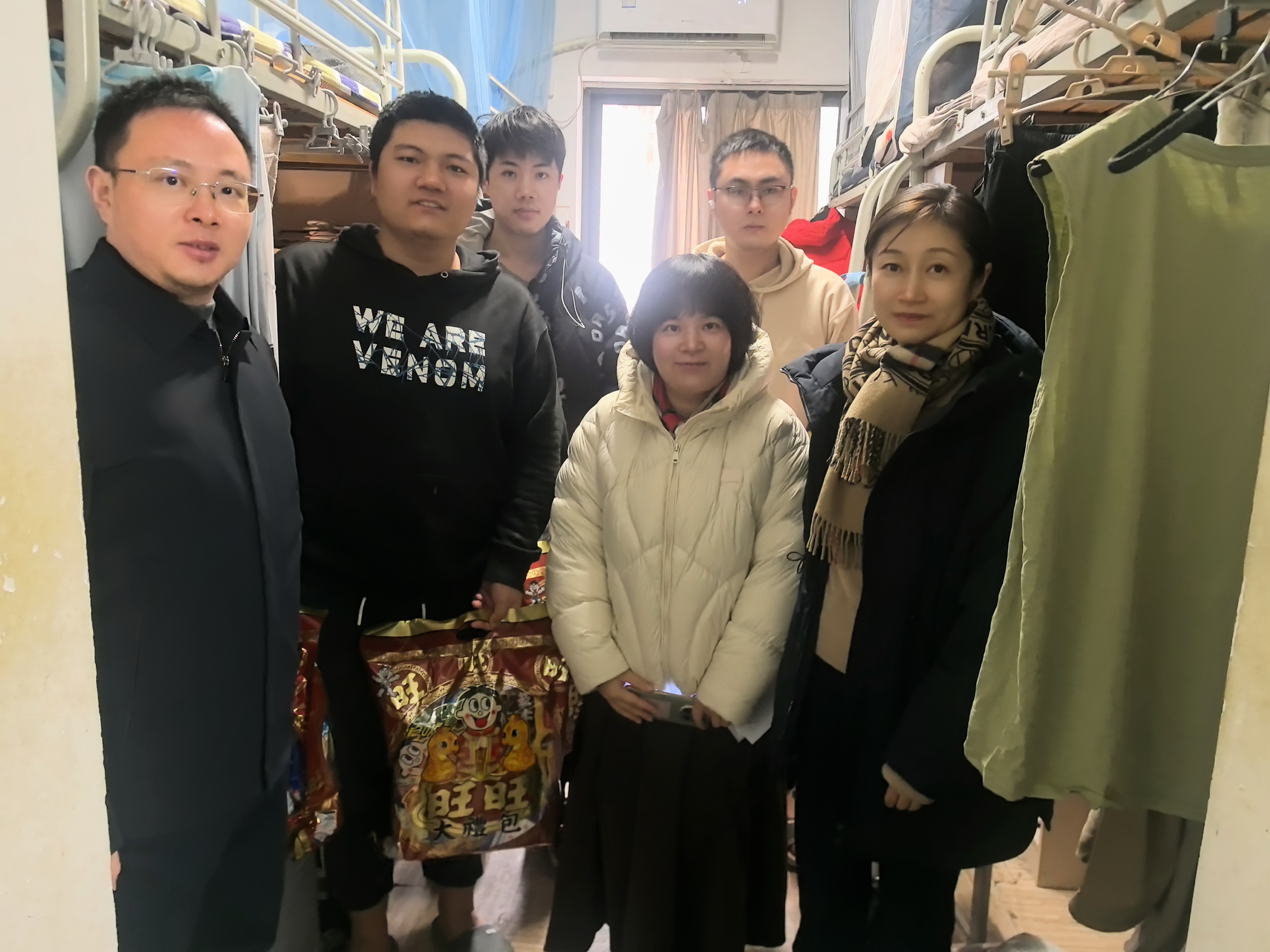 在期末考试和元旦来临之际,为更深入地了解同学们的思想动态以及学习和生活状况,偷拍自拍 开展了期末慰问“三室一厅”主题活动。12月27日、12月30日学院党委书记周媛、党委副书记周安、副院长董昊和辅导员赵玉倩、陈丹、司林敏一起走进学生寝室、教室和研究生办公室等进行走访慰问并送上元旦的温馨祝福。