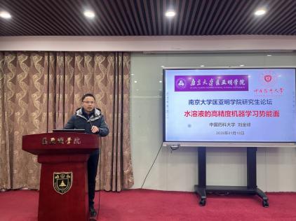 论坛分为学术报告和海报讨论两个环节。在学术报告环节,首先由本次论坛的特邀嘉宾东南大学马亮教授与中国药科大学刘金峰副教授开展学术报告。马亮教授分享了他的团队在二维半导体可控成核与生长的表界面制探究的成果,刘金峰副教授介绍了他的团队对于水溶液的高精度机器学习势能面的最新进展。随后,学院各课题组的七位研究生同学们依次登台,展示了自己近期在科研领域的成果。高星杰同学通过建立生物网络模型,探究了免疫微环境调控对于肿瘤细胞命运抉择的影响;赵苗苗同学介绍了一种基于生成式模型的增强采样方法DA2-VAE;张橙同学在结构受限磷化合物活性算符的理论研究中取得较大进展;于文洁同学探究了银和银基近表面合金电催化二氧化氮选择性还原生成羟胺的微观机制;李俊艾同学报告了在活性膜的分子动力学模拟工作中取得的成果;朱颖同学在脂质过氧化物对于GPCR功能的影响研究中取得阶段性的进展;孔铁霖同学汇报了铁电极化忆阻器的含时电流模拟工作的研究。精彩的学术报告引发了师生的热烈讨论,拓宽了同学们的学术视野。