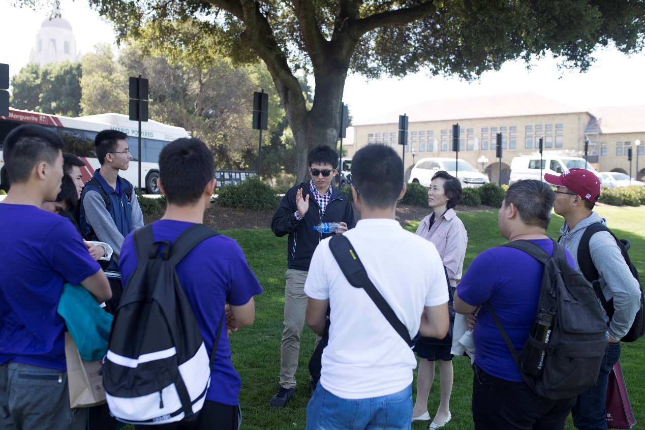 同学们又来到了斯坦福大学,见到了在斯坦福读博的12级院友宗麟奇学长。学长带大家参观了斯坦福的校园,介绍了自己在斯坦福的所见所闻,并鼓励大家积极科研、学习,找好自己的道路。