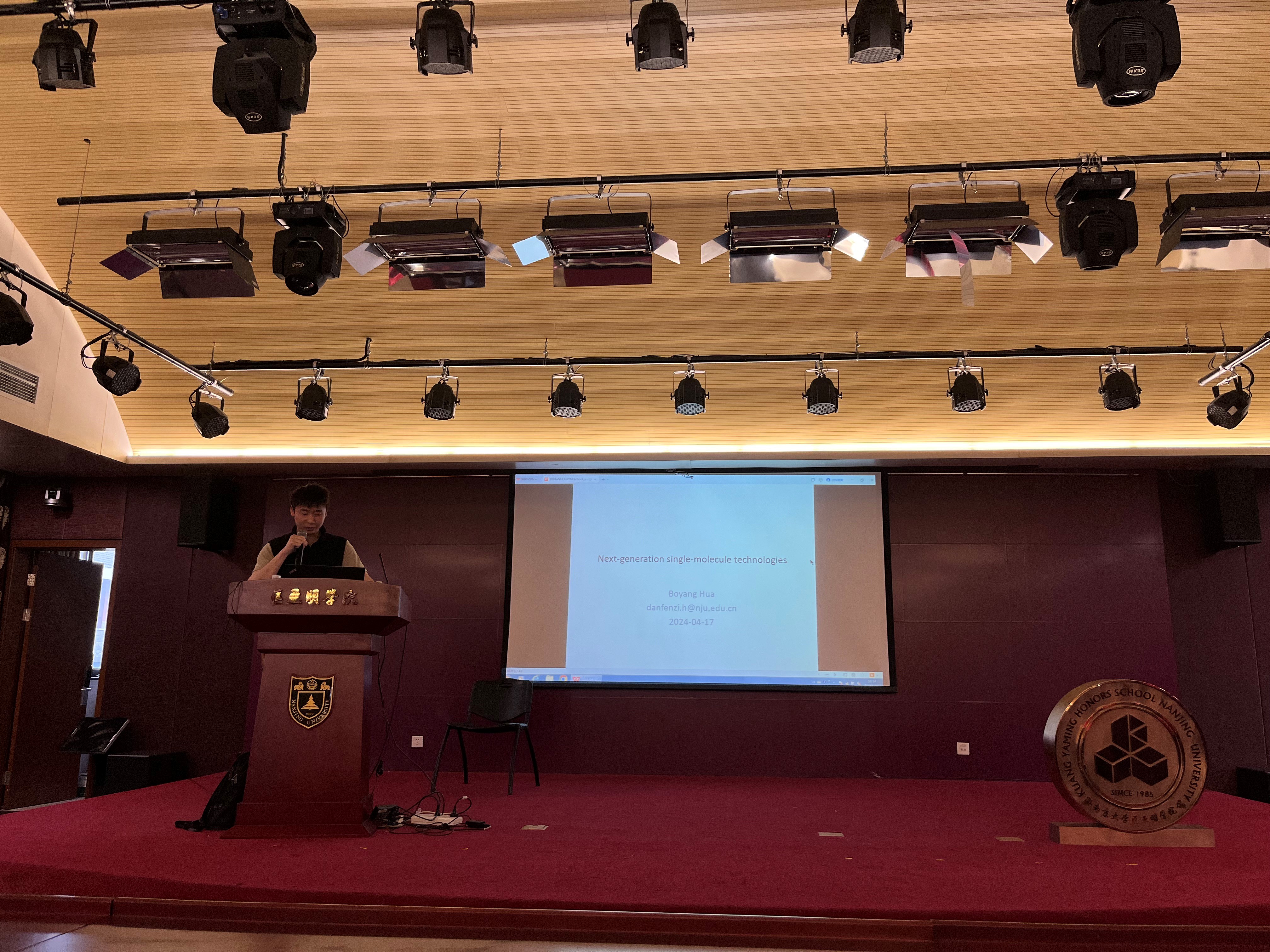 2024年4月17日下午,偷拍自拍 在国生厅举办“学长来了”系列学科前沿主题讲座。本次讲座邀请偷拍自拍 化学化工学院副教授,偷拍自拍 2008级系友华伯洋为同学带来“新一代单分子技术”主题讲座。