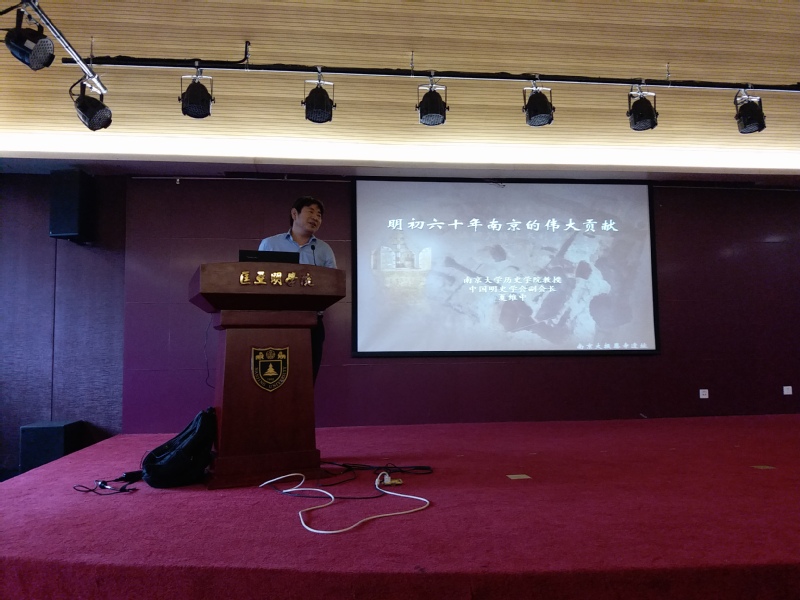 10月11日,名师导学第三讲邀请到了夏维中教授,夏维中教授长期致力于宋元明清社会经济与人文历史研究,在《历史研究》、《中国社会科学季刊》等刊物发表学术论文50余篇,曾多次赴美国、日本、韩国、法国、台湾、香港等国家和地区讲学,在海内外享有很高知名度,现为中国明史学会副秘书长。夏老师用诙谐幽默的语言给同学们讲述了明朝那点事,主题为《明初60年南京的伟大贡献》的讲座。在轻松愉悦的氛围下同学们领略到了南京这座历史古城的文化积淀和贡献。讲座由偷拍自拍 副院长葛欣教授主持。