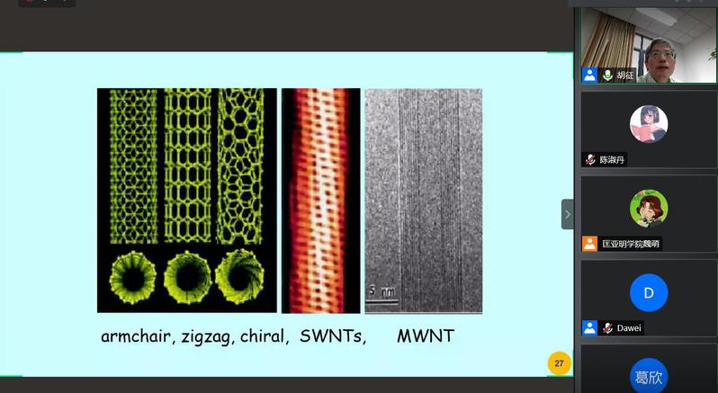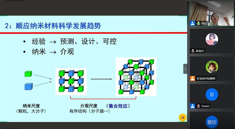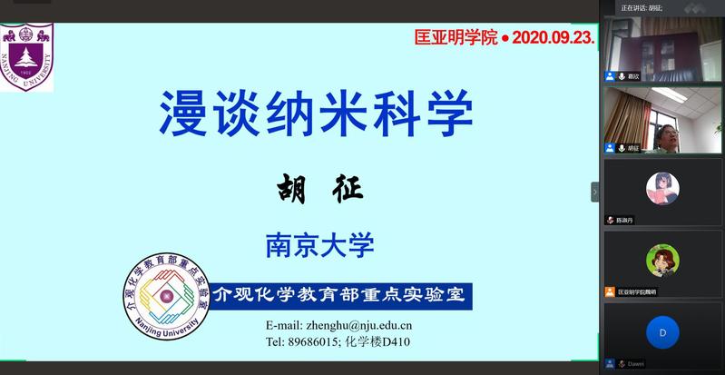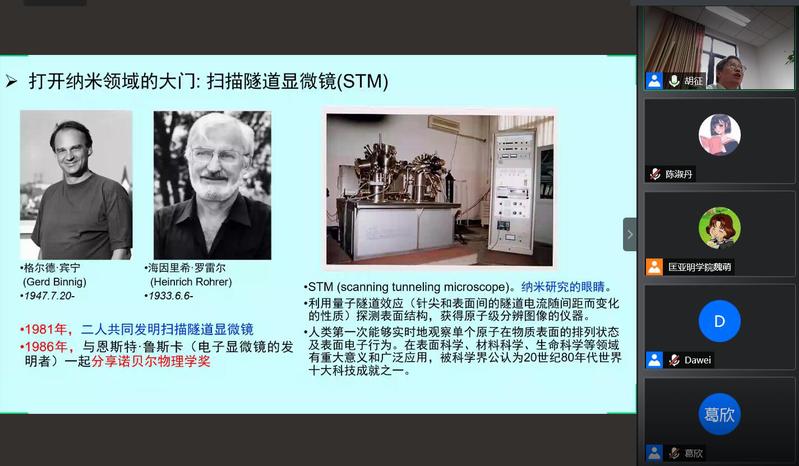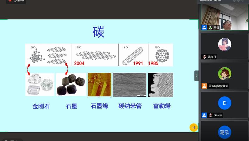 9月23日下午,介观化学重点实验室的胡征教授给偷拍自拍 的同学带来以“漫谈纳米科学”为主题的线上名师讲座。围绕纳米材料发展进程,介绍了他和研究团队在纳米碳材料领域做出的创新型工作;通过具体的例子和心路历程,让同学们认识纳米材料,感受科研的思维、方法、精神及其与科学知识的联系。