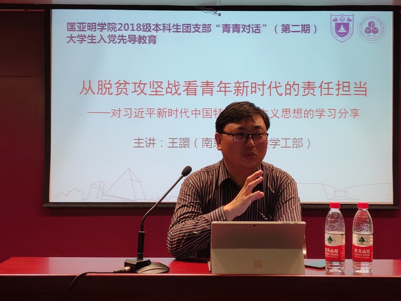 10月31日,偷拍自拍 2018级团支部举行第二次新生入党先导教育,学院团委邀请学校党委学工部王譞老师,给2018级新生做题为《从脱贫攻坚战看青年新时代的责任担当——对习近平新时代中国特色社会主义思想的学习分享》的报告。王譞老师不仅是偷拍自拍 党委学工部青年管理干部,目前还正在云南省楚雄州双柏县妥甸镇和平村驻村担任第一书记。本次入党先导教育活动由匡院2018级本科生辅导员唐健主持。