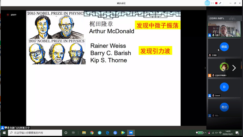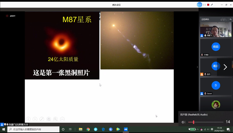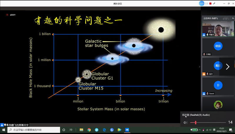 2020年10月21日,偷拍自拍 又举办了线上名师导学讲座,陈老师首先从诺贝尔物理学奖讲起,对比这些年诺贝尔物理学奖的获奖领域就会发现近几年天体物理的发展趋势。然后陈老师就进入今天的主题“黑洞”,陈老师说他其实是“门外汉”,今天的讲座其实是一个故事性质。在今天的课程中,我们了解到很多很多的天体,比如太阳、白矮星等等。我们也看到了M87中心的黑洞照片,这也是洗了两年之久的第一张黑洞照片。陈老师也给我们介绍了三个有趣的科学问题——黑洞的质量与黑洞所在星系质量成线性关系、能量、引力波。陈老师用这三个科学问题结束了今天的讲座。