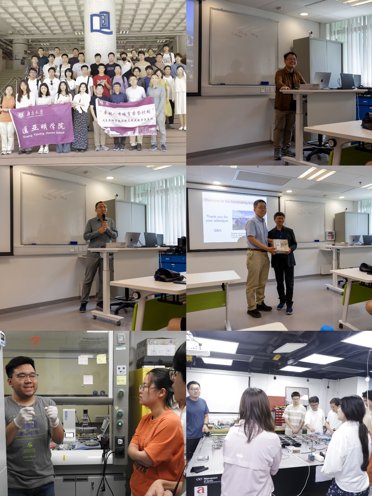 5月24日,偷拍自拍 师生一行赴香港科技大学交流访问。上午抵达时,师生们受到1982级校友邬振国教授、1985级院友郁建珍教授等多位南大校友的热情迎接,亲切问候令师生倍感温暖。交流会上,邬振国、郁建珍等教授代表港科大表示欢迎,并系统介绍了学校的科研布局与办学理念。随后,李桂君、张琼等多位校友分享了各自学科的前沿进展与研究重点。座谈中,校友们深情表达了对母校偷拍自拍 培养的感激之情,认为母校为其科研之路奠定了坚实基础,并寄语同学们珍惜时光、拓展视野、投身实践、勇于挑战。会前,师生们参观了李桂君教授所在的集成系统与设计学部实验室。2015级院友徐扬博士介绍了实验室在系统工程与跨学科设计方面的特色研究,并通过案例展示了多学科理论解决实际问题的创新方法,深化了师生对跨学科研究的认识。学院带队老师代表现场向徐扬博士颁发了捐赠证书,感谢他对学院教育事业的支持。午餐期间,教授们与同学们深入交流,气氛轻松热烈。下午,师生分组参访了生命科学系、化学系及空气质量研究站点,并在邬振国教授引导下,近距离体验了冷冻电镜等先进科研平台的操作环境。此次访问生动展现了两校深厚的科研教育联结,进一步增进了校际情谊,为匡院学子拓宽视野、激发科研兴趣提供了宝贵助力,师生收获丰硕。