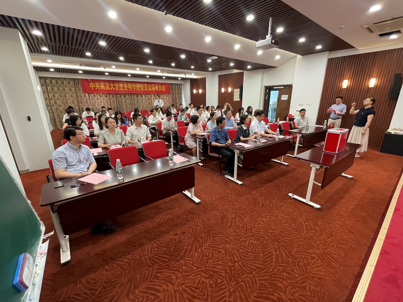 大会在庄严的国歌声中拉开帷幕。在《中共偷拍自拍 委员会委员选举办法》审议通过后,大会按照有关规定,在对学院党委换届大会选举办法及监票人、计票人名单等进行举手表决后,采取无记名投票的方式进行差额选举,从6名候选人中差额选出了5名党委委员。