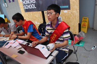 在辅导员司林敏、唐健老师以及匡院团学联众多成员的精心准备下,迎新工作有条不紊:安排校门口引导,保证新生第一时间找到匡院;设置家长休息室,让陪同家长有休息所在;学长前来帮忙,指导新生购买耳机、军训服装、拍摄电子照等;签名墙签名并留影,留下有纪念意义的瞬间(下图为第一个报到的高宇翔同学,在签名墙上留下了第一个名字);学长介绍南大生活,分享生活学习经验……匡院团学联同学尽职尽责,力求迎新工作尽善尽美。