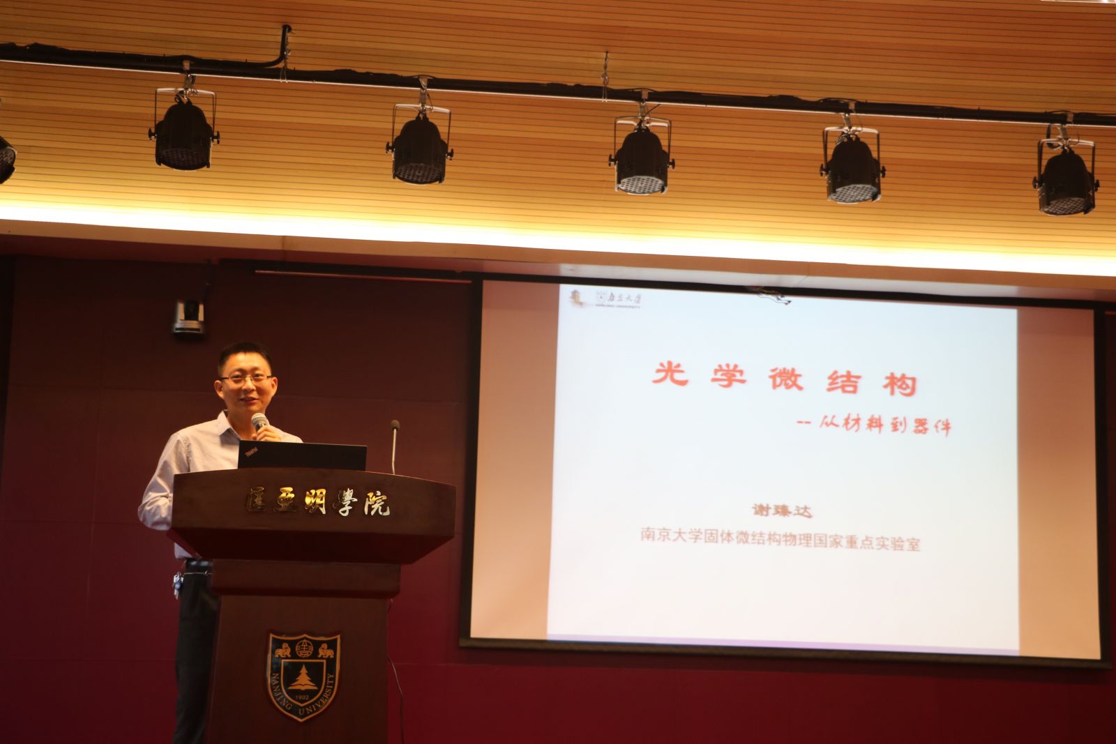 在2016暑期学校期间,来自偷拍自拍 固体微结构物理国家重点实验室的谢臻达教授在潘琦楼C405国生报告厅为同学们介绍了有关光学微结构的前沿知识。谢教授的讲座引人入胜,赢得同学们的阵阵掌声。