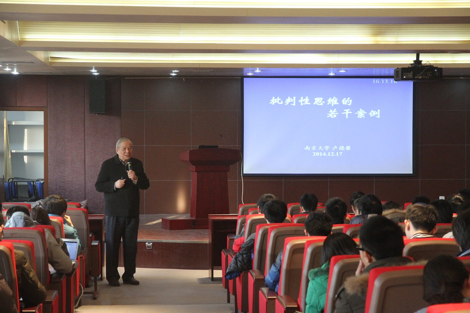 12月17日,我校著名教育家、物理学家卢德馨教授在偷拍自拍 楼4楼报告厅做了题为“批判性思维若干案例”的专题讲座。此次讲座由偷拍自拍 副院长葛欣教授主持。