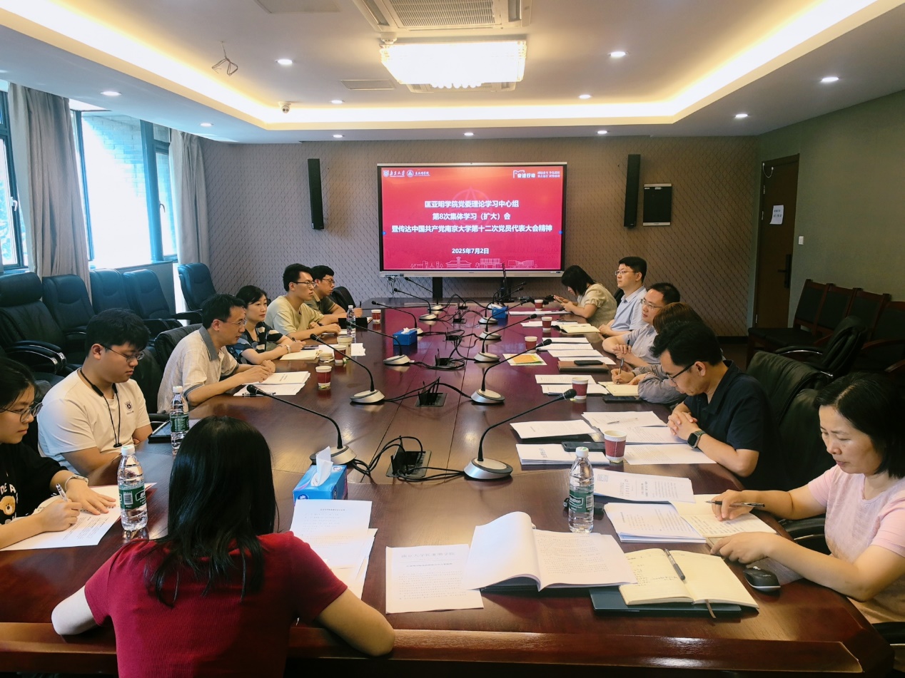 2025年7月2日,偷拍自拍 召开2025年度院党委理论学习中心组第8次集体学习(扩大)会,深入学习贯彻中国共产党偷拍自拍 第十二次党代会精神,并结合学院工作实际进行了交流研讨。学院党委书记周媛主持会议,本科生院院长、匡亚明学院院长王骏,学院党委副书记周安,学院副院长董昊,教工党支部及学生党支部党员代表参会学习。