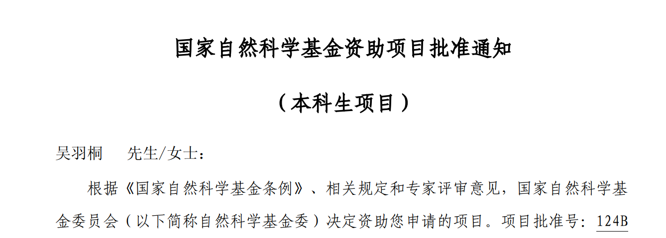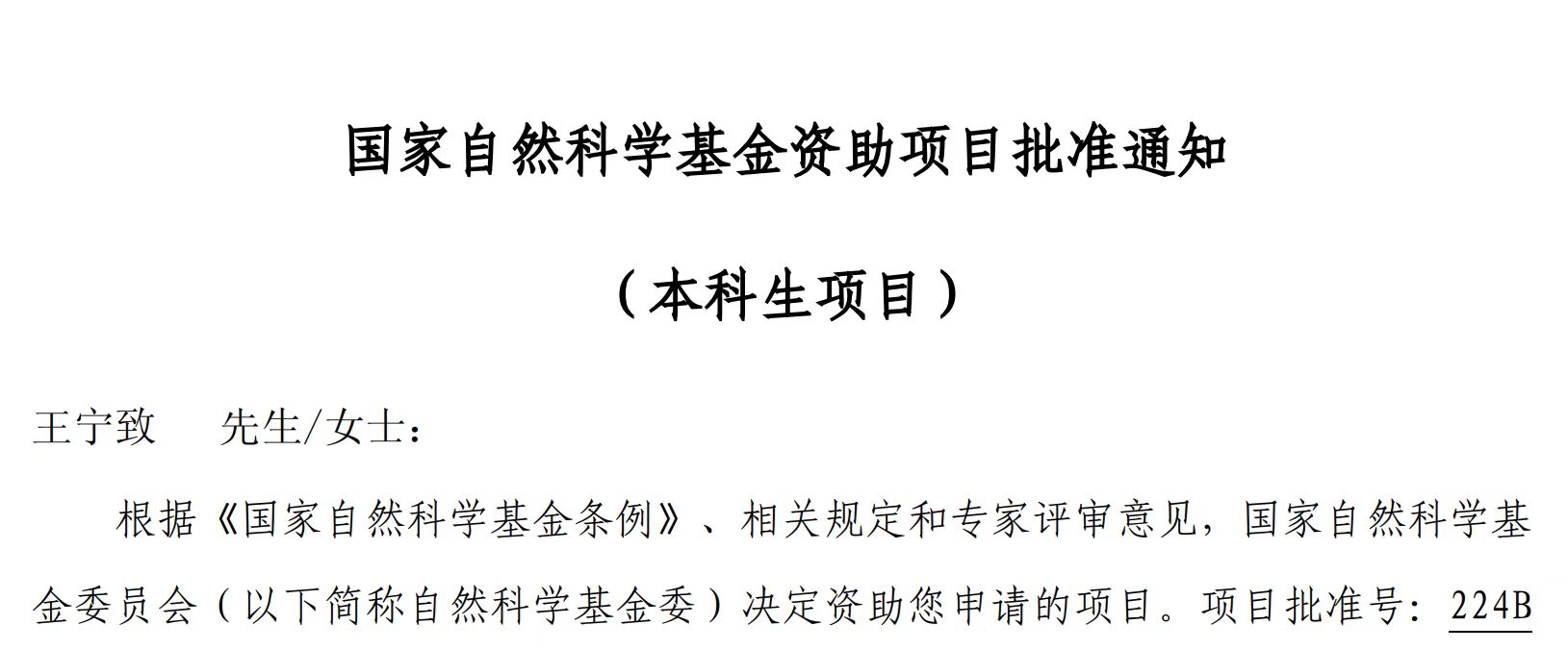 我院两名本科生获批2024年国家自然科学基金青年学生项目