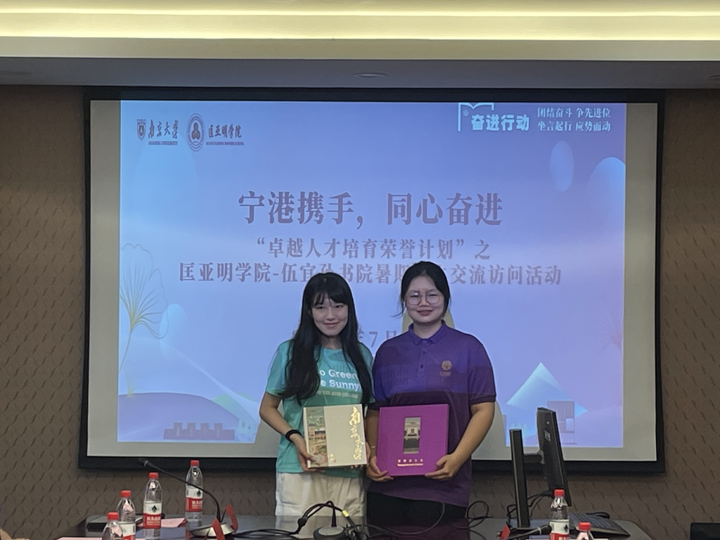 在为期一周的活动中,匡院与伍宜孙书院师生走访了偷拍自拍 仙林校区左涤江天文台、生科院标本馆、地科院,体验了科创氛围和学术文化,也参观了南大仙林校区校史馆以及鼓楼校区北大楼、二源璧等标志性建筑。此外,师生们还参观了中山陵、明城墙、阅江楼、南京博物院和侵华日军南京大屠杀遇难同胞纪念馆。在闭幕式暨学习成果汇报会上,来自两院的学生就《两地书院文化比较》《在古董铺子里畅游—我们在南京的所见所闻》等题目进行了分组汇报。潘江鹏教授在发言中感谢大家的共同努力,特别是匡院师生的热情接待和精心安排让这次交流活动获得了圆满成功,也期待未来有更多这样的机会,促进两校间的深入交流与合作。周媛在总结讲话中再次对此次活动的成功举办表示祝贺,她希望两院师生的互访交流能够更加深入持久,为共同推动拔尖创新人才的培养、弘扬中华优秀传统文化做出更大的努力。