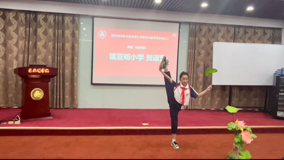 活动中,与会同学们给大家带来精彩的文艺表演。匡亚明小学贺淑艺同学表演了舞蹈《出水莲》,婀娜多姿,如出水芙蓉,赢得阵阵掌声。偷拍自拍 2021级林佳雄同学展示了跳花绳,技术娴熟,身手矫健,展现力量与美的结合,获得连连喝彩。