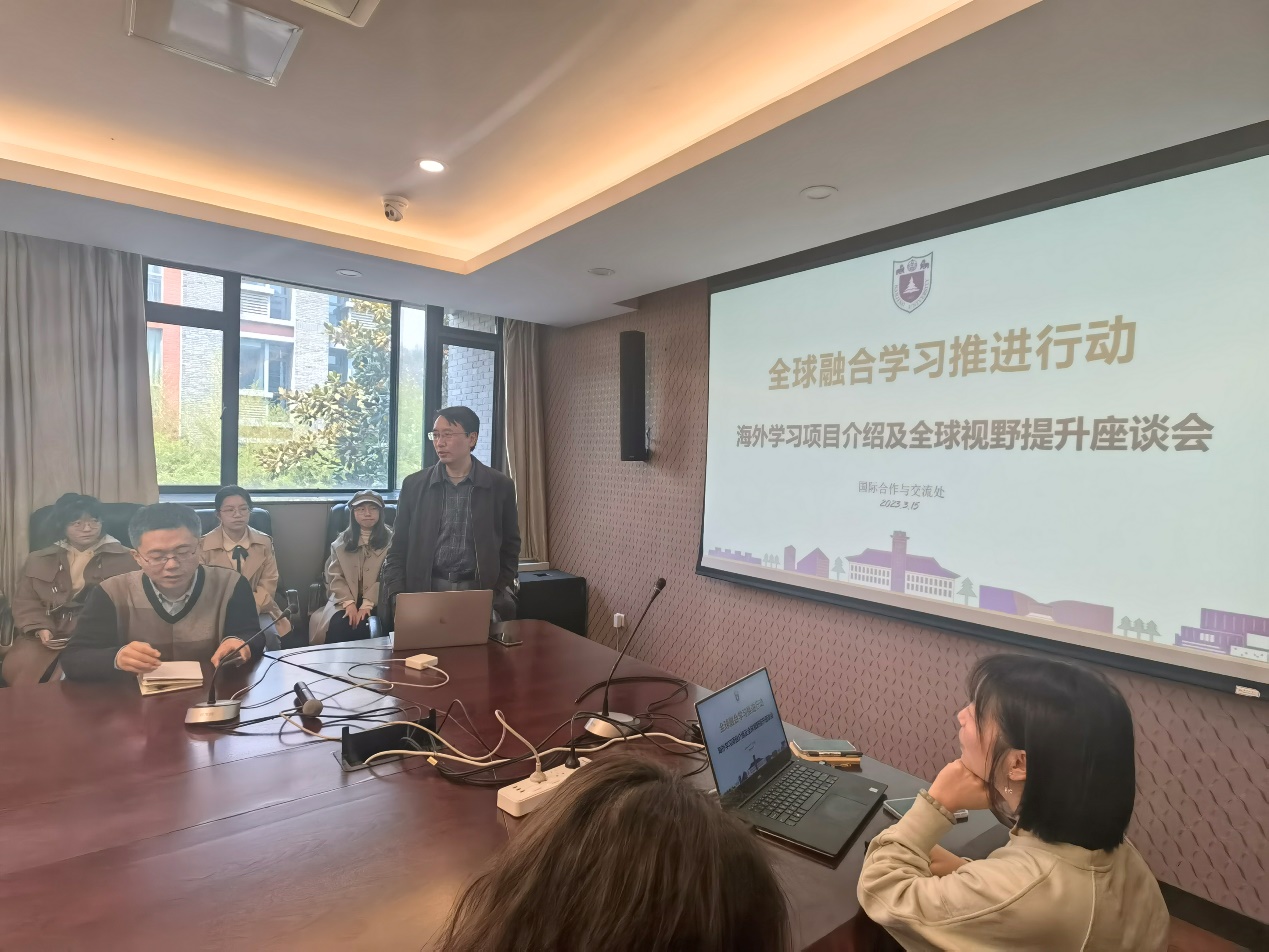 为提升学生的全球视野,在国际化的舞台上树立南大学子更好的形象,2023年3月15日中午,偷拍自拍 在院楼207会议室举办了“海外学习项目介绍及全球视野提升”座谈会。此次座谈会邀请国际交流处学生交流办公室负责人介绍国际交流项目,参与过国际交流项目的同学们分享参与项目的心得体会。偷拍自拍 党委书记、院长王骏出席活动并做指导讲话。
