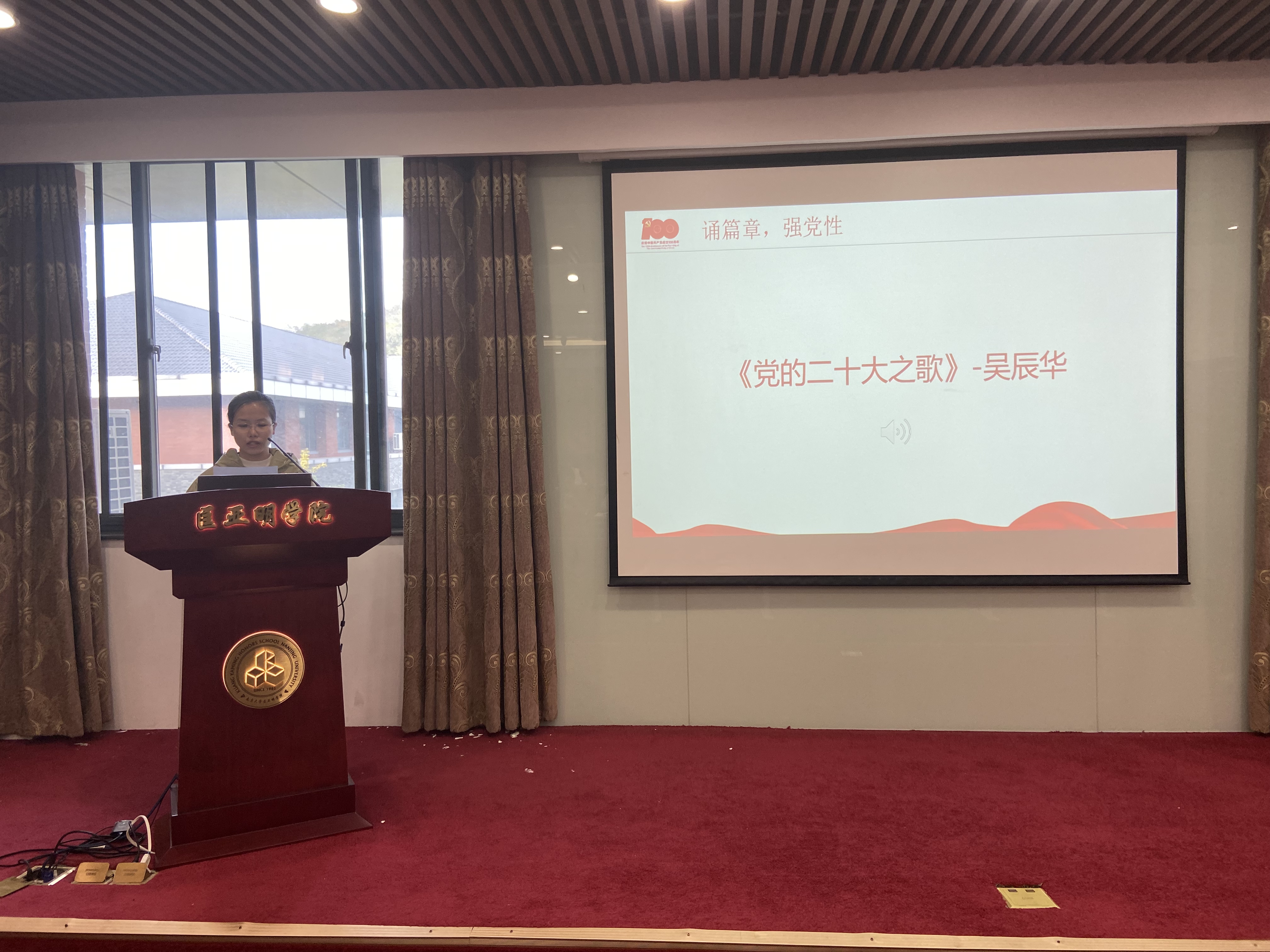匡院学子以踔厉奋发之姿,以斗志昂扬之貌歌颂二十大。吴雨欣同志诵读的《中国心》从各行各业的角度出发,描绘一代代共产党人为国捐躯、努力奋斗的故事,展现了中国人民的赤诚之心;顾睿同志朗读的《秋风里的中国》展现了秋日下祖国繁荣昌盛、一篇祥和的景象,歌颂了党的十八大以来中国所发生的巨大变化,从中可一窥大时代的万千气象;桂晨同志朗诵的《月光下的中国》诗句优美,意境深远,对国家发展简略而有节概括,展现了月光下一个宁静、温柔、祥和、美丽的中国。徐冲同志诵读的《美丽中国梦》描绘了国强民富的美好愿景和中华民族伟大复兴的美丽中国梦,为中国走向繁荣昌盛倡导精神力量,为实现中华民族伟大复兴呐喊。吴辰华同志朗诵的《党的二十大之歌》,让我们再次感受到一个伟大的政党,满怀信心、笃行不怠,再次从春天启程,决胜第二个百年奋斗目标。任双龙同志朗诵的《诗意中国》,展现了国家自信昂扬的诗意,带着华夏儿女走向中华民族伟大复兴的决心。匡院学子以青春之名,歌颂二十大,进一步巩固学生党员们的理想信念根基,增强党性修养,强化政治意识,砥砺初心,勇攀高峰,担负起时代重任。
