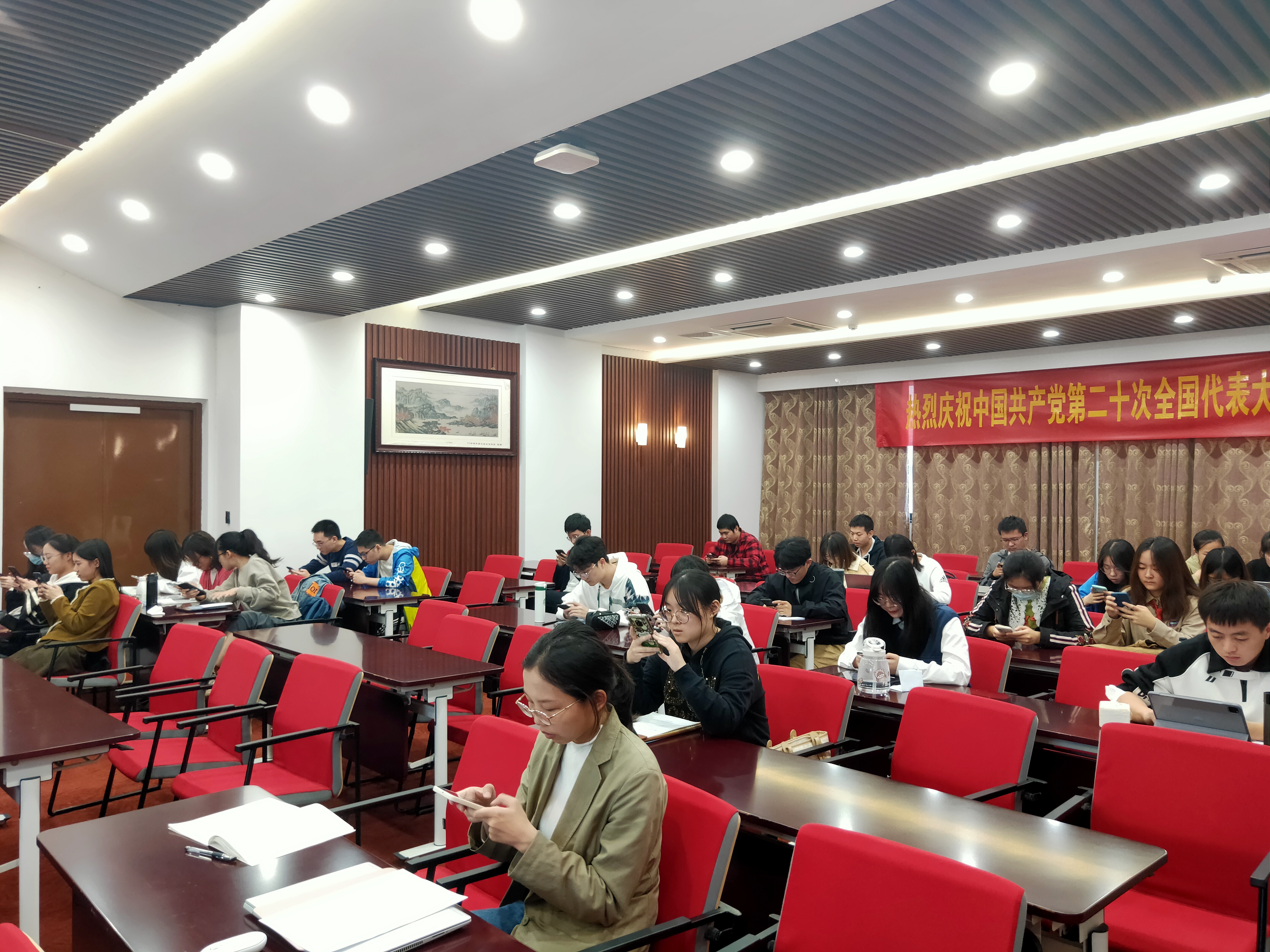为庆祝党的二十大胜利召开,深入学习贯彻落实二十大精神,偷拍自拍 学生党支部开展了“学习二十大,奋进新征程”主题党日活动。引导全体党员要把新时代中国特色社会主义思想的精神实质和丰富内涵内化于心,外化于行,坚定不移跟党走,牢记使命,忠诚担当。活动由学生党支部书记朱莉莉老师主持。