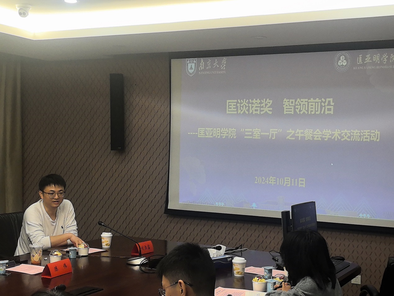 关于今年诺贝尔物理学奖和化学奖,几位教授分享了自己的看法。让我印象最深刻的是AI带来新的研究范式和学科交叉的重要性。相较于传统的实验研究或者理论建模,以机器学习为代表的人工智能算法革新了面对复杂体系的研究方法,可以帮助解决很多实验和第一性计算难以完成的任务,尤其是在生化、工程、材料等研究中发挥着重大作用。此外,就像神经网络的发现受到统计物理的启发,多学科交叉背景有助于研究者从更广阔的视角发现和解决难题。通过本次午餐交流会,我对AI for Science有了更清晰的认识,也意识到拓展自己学科视角的必要性。非常感谢学院组织此类学术交流活动。