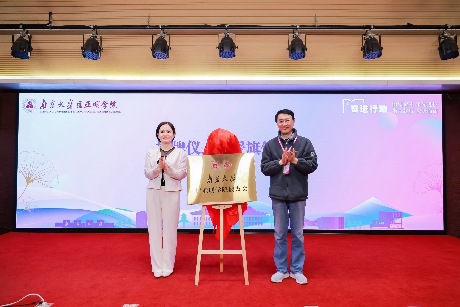 冯帆、王骏为学院校友会揭牌