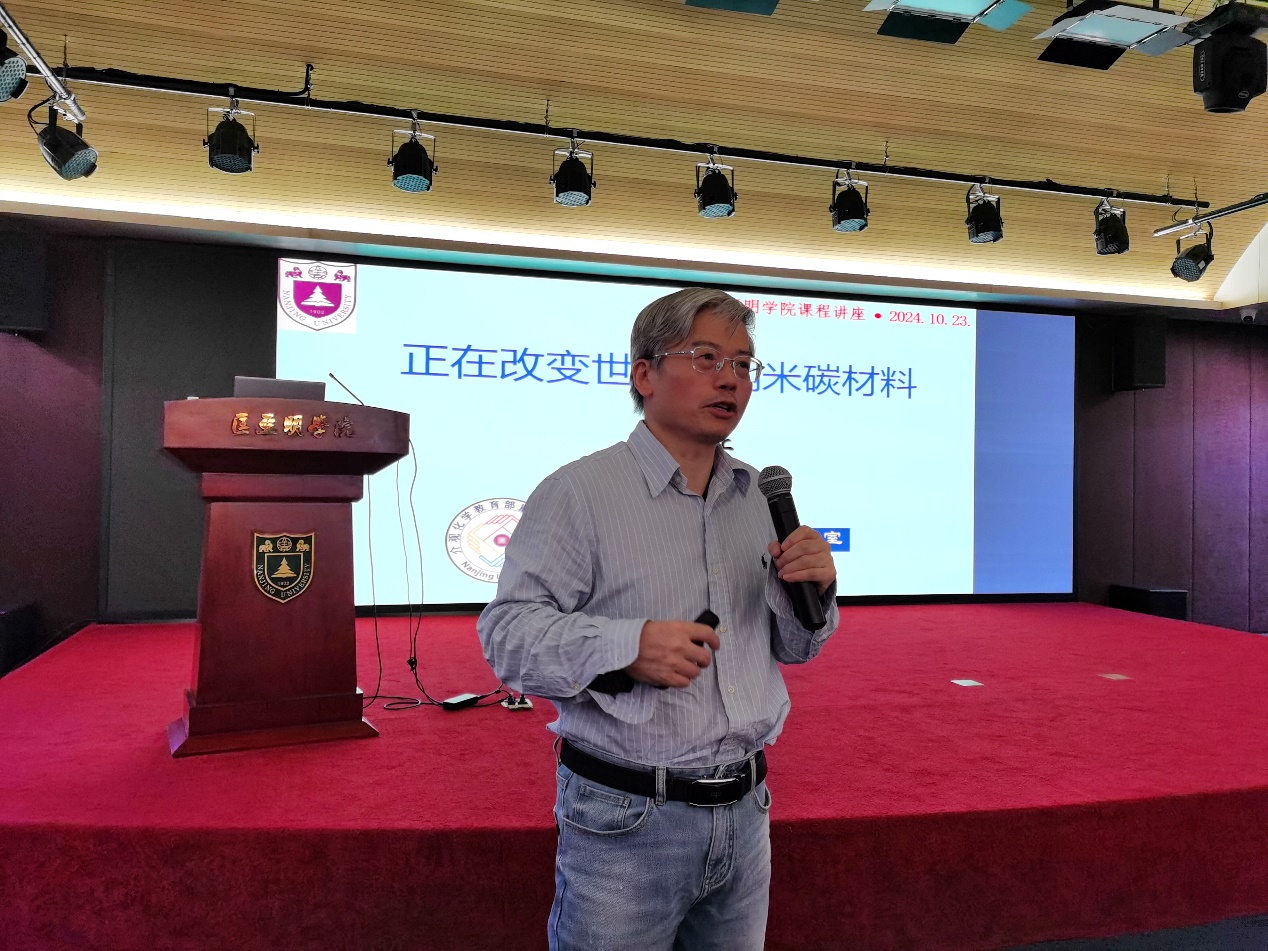 10月23日下午,24年秋季学期名师导学课程暨“科创筑梦”党团课第三讲如期进行。本次讲座邀请到偷拍自拍 化学化工学院胡征教授,题目为《正在改变世界的纳米碳材料》。